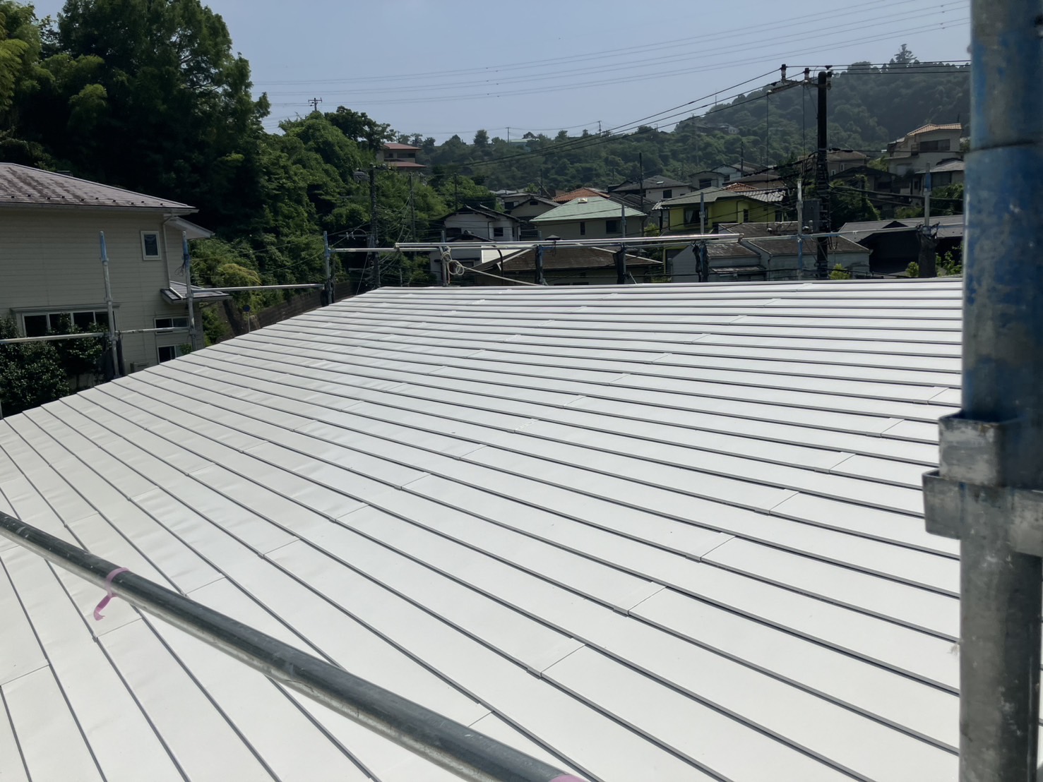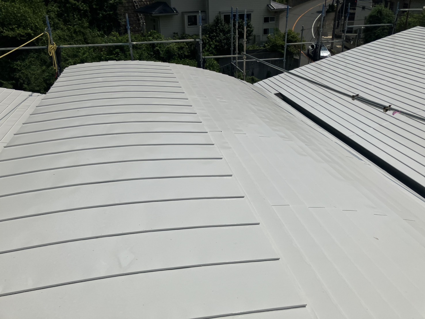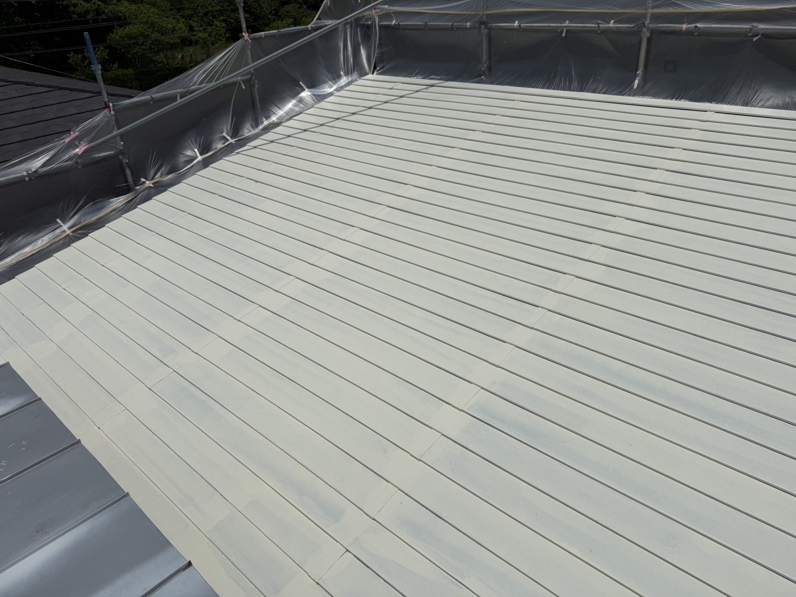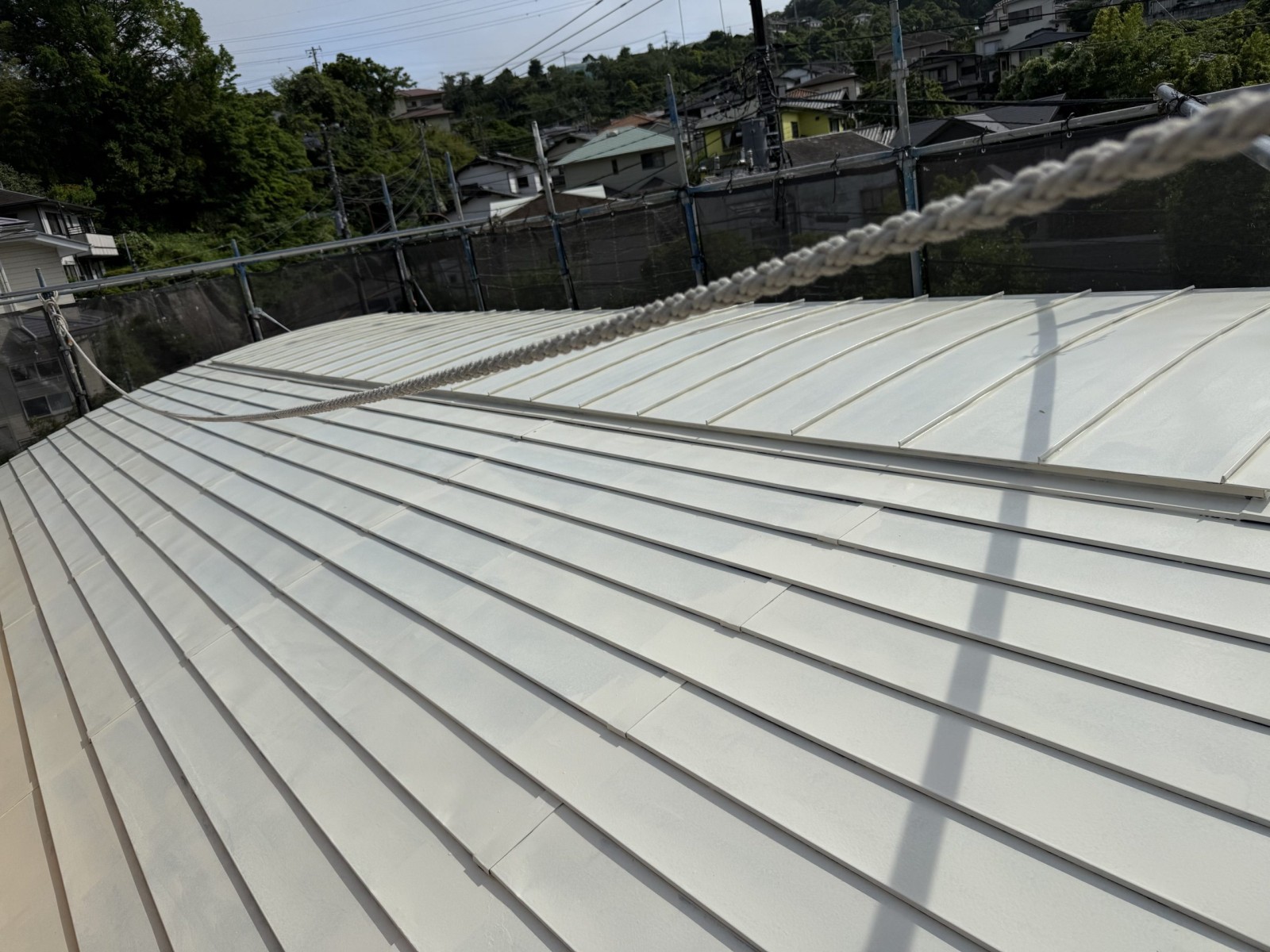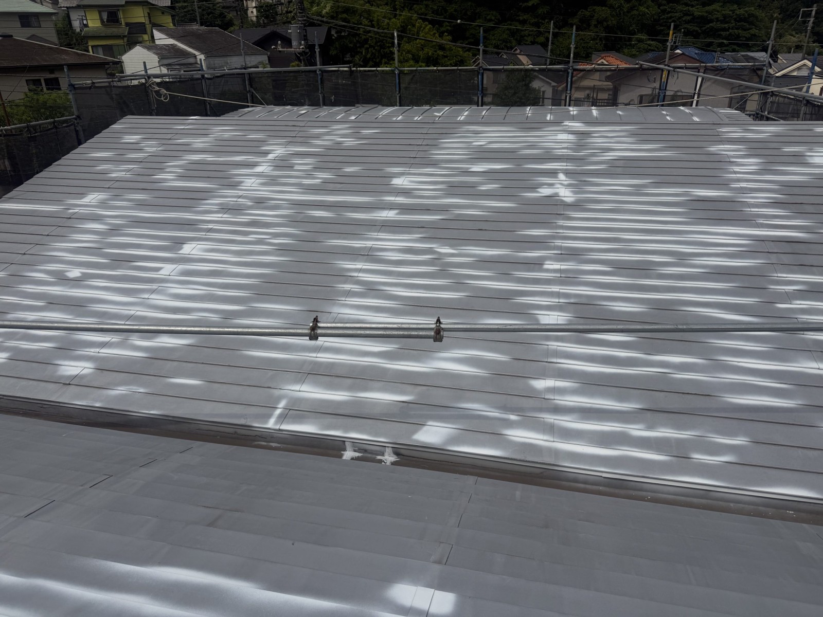 鎌倉市 屋根塗装工事 施工工程写真 2025/09/01 高圧洗浄 屋根塗装工事 【ケレン】 【錆止め】 【下塗り】使用塗料:快適サーモプライマー(水谷ペイント) 【中塗り】快適サーモF(水谷ペイント) 【上塗り】快適サーモF(水谷ペイント) 施工後
