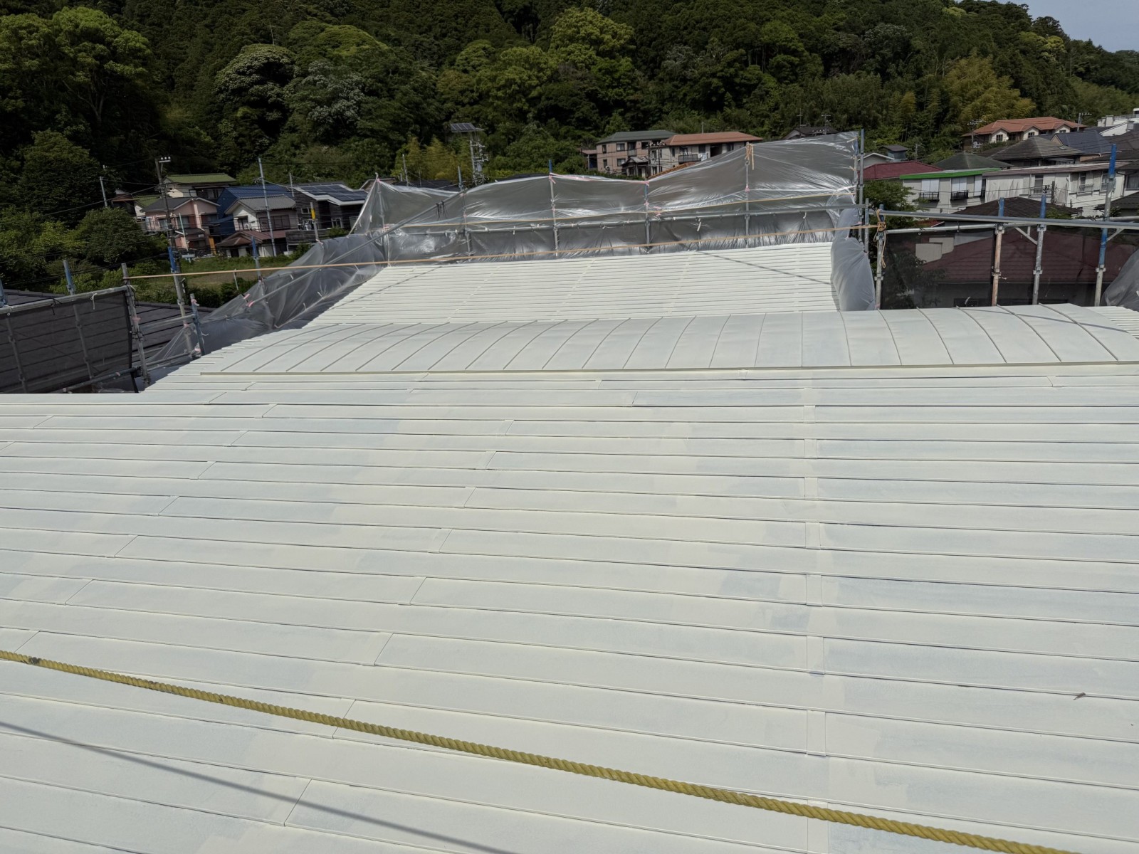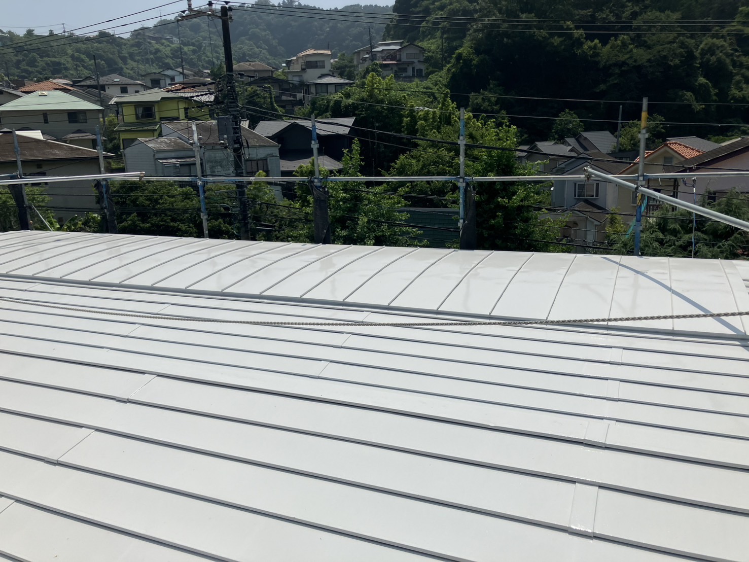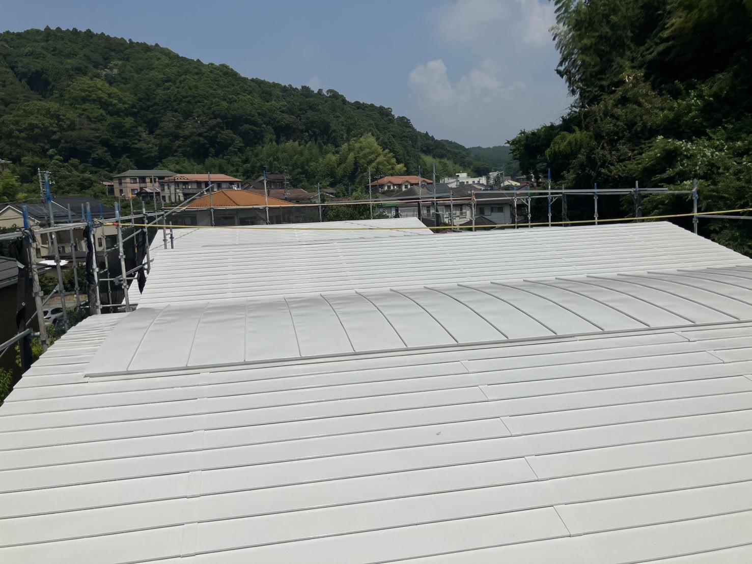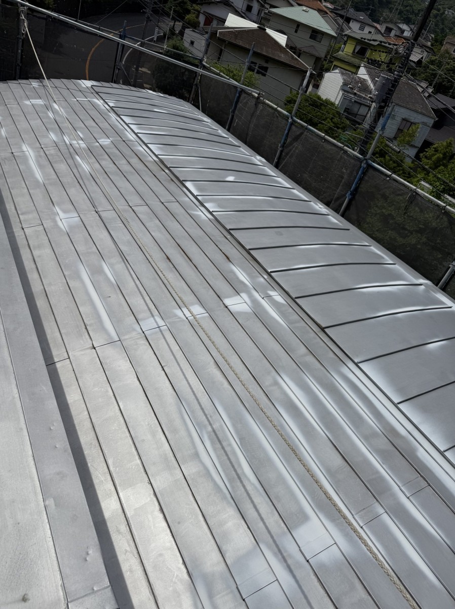 鎌倉市 屋根塗装工事 施工工程写真 2025/09/01 高圧洗浄 屋根塗装工事 【ケレン】 【錆止め】 【下塗り】使用塗料:快適サーモプライマー(水谷ペイント) 【中塗り】快適サーモF(水谷ペイント) 【上塗り】快適サーモF(水谷ペイント) 施工後