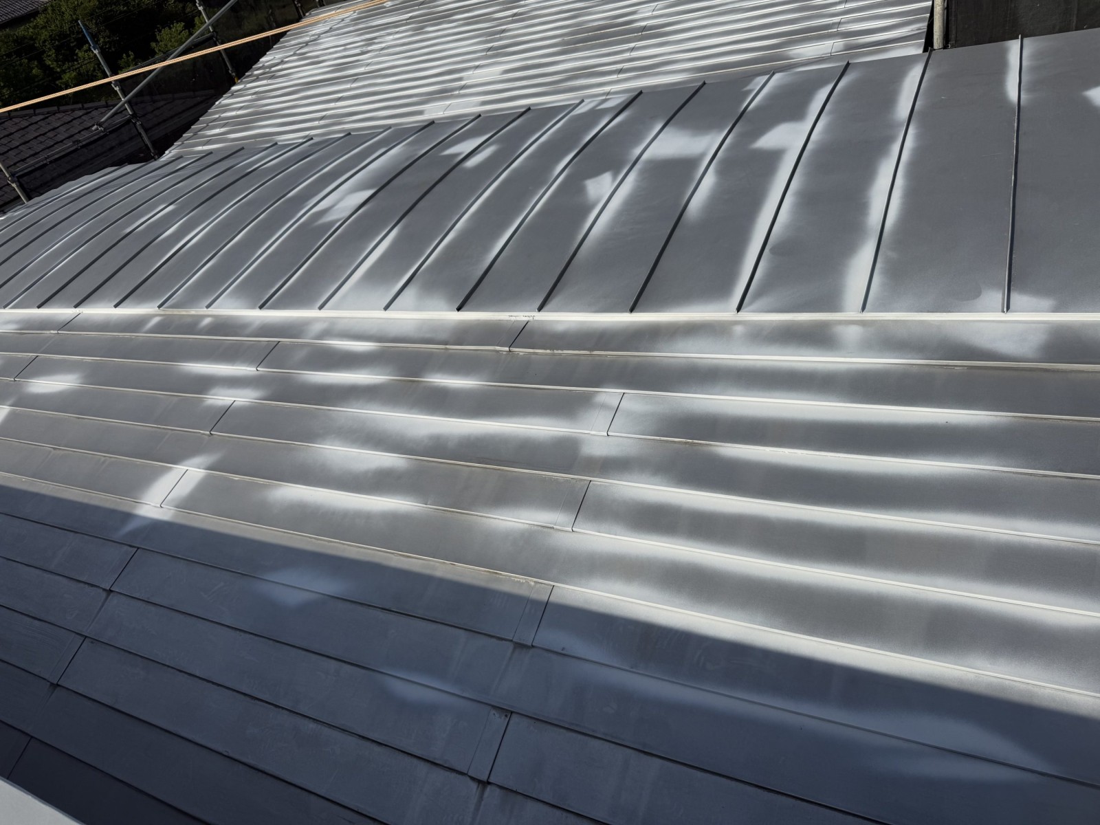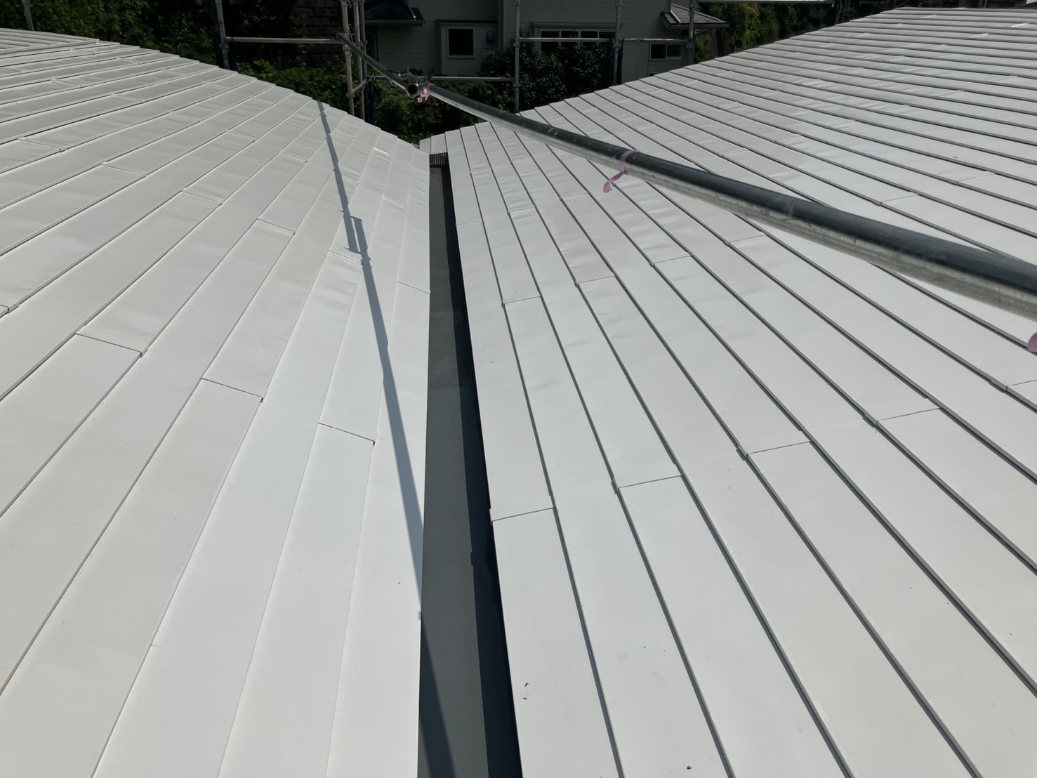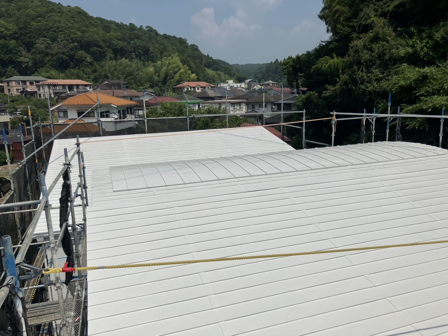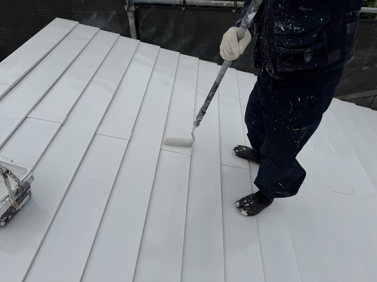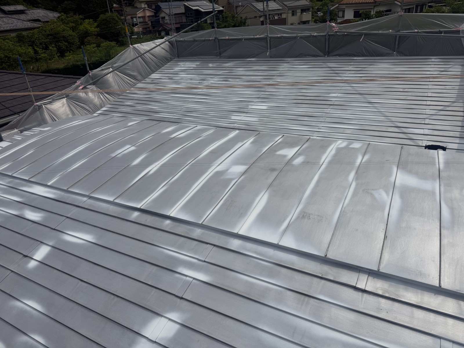 鎌倉市 屋根塗装工事 施工工程写真 2025/09/01 高圧洗浄 屋根塗装工事 【ケレン】 【錆止め】 【下塗り】使用塗料:快適サーモプライマー(水谷ペイント) 【中塗り】快適サーモF(水谷ペイント) 【上塗り】快適サーモF(水谷ペイント) 施工後