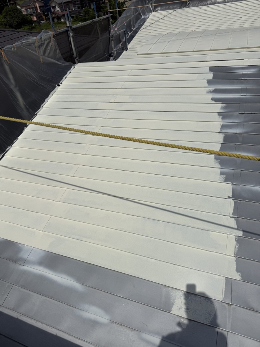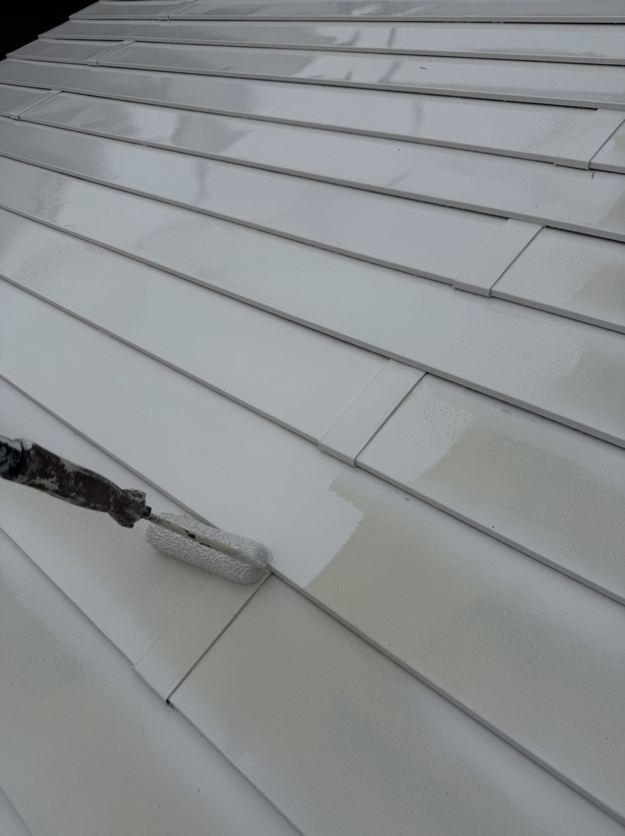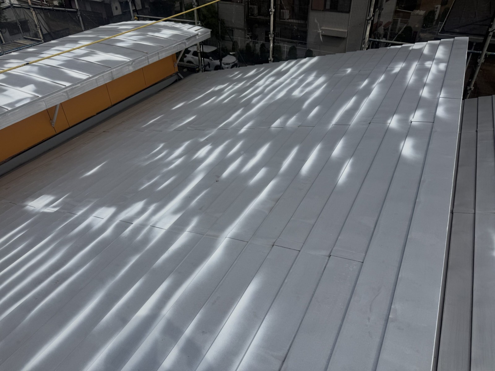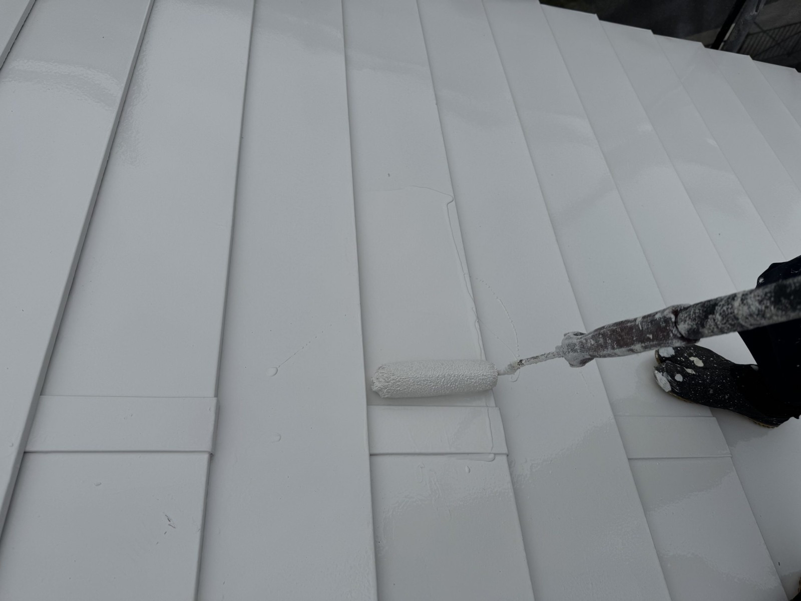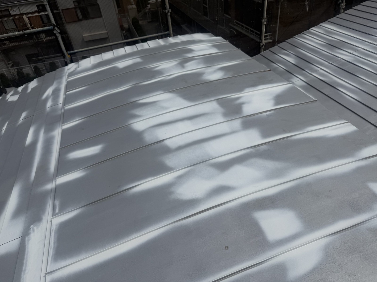 鎌倉市 屋根塗装工事 施工工程写真 2025/09/01 高圧洗浄 屋根塗装工事 【ケレン】 【錆止め】 【下塗り】使用塗料:快適サーモプライマー(水谷ペイント) 【中塗り】快適サーモF(水谷ペイント) 【上塗り】快適サーモF(水谷ペイント) 施工後