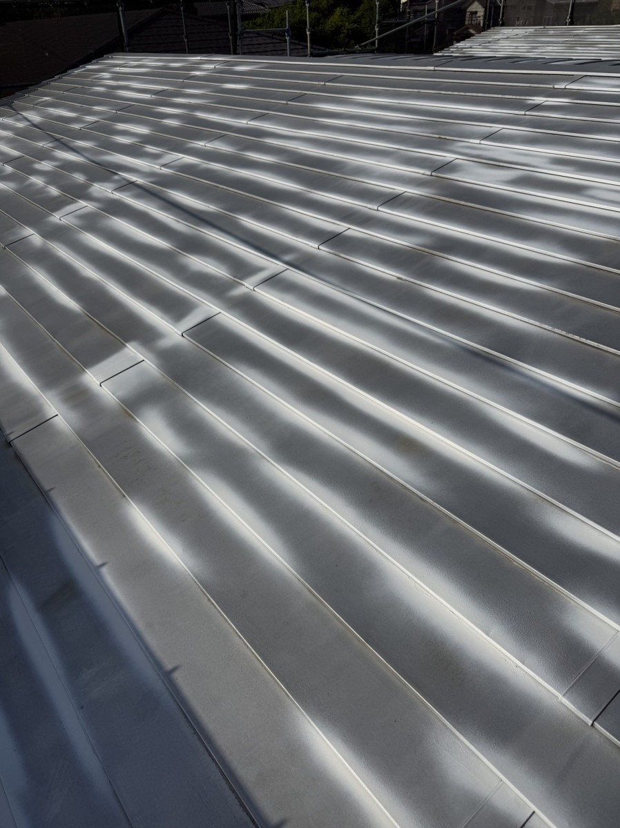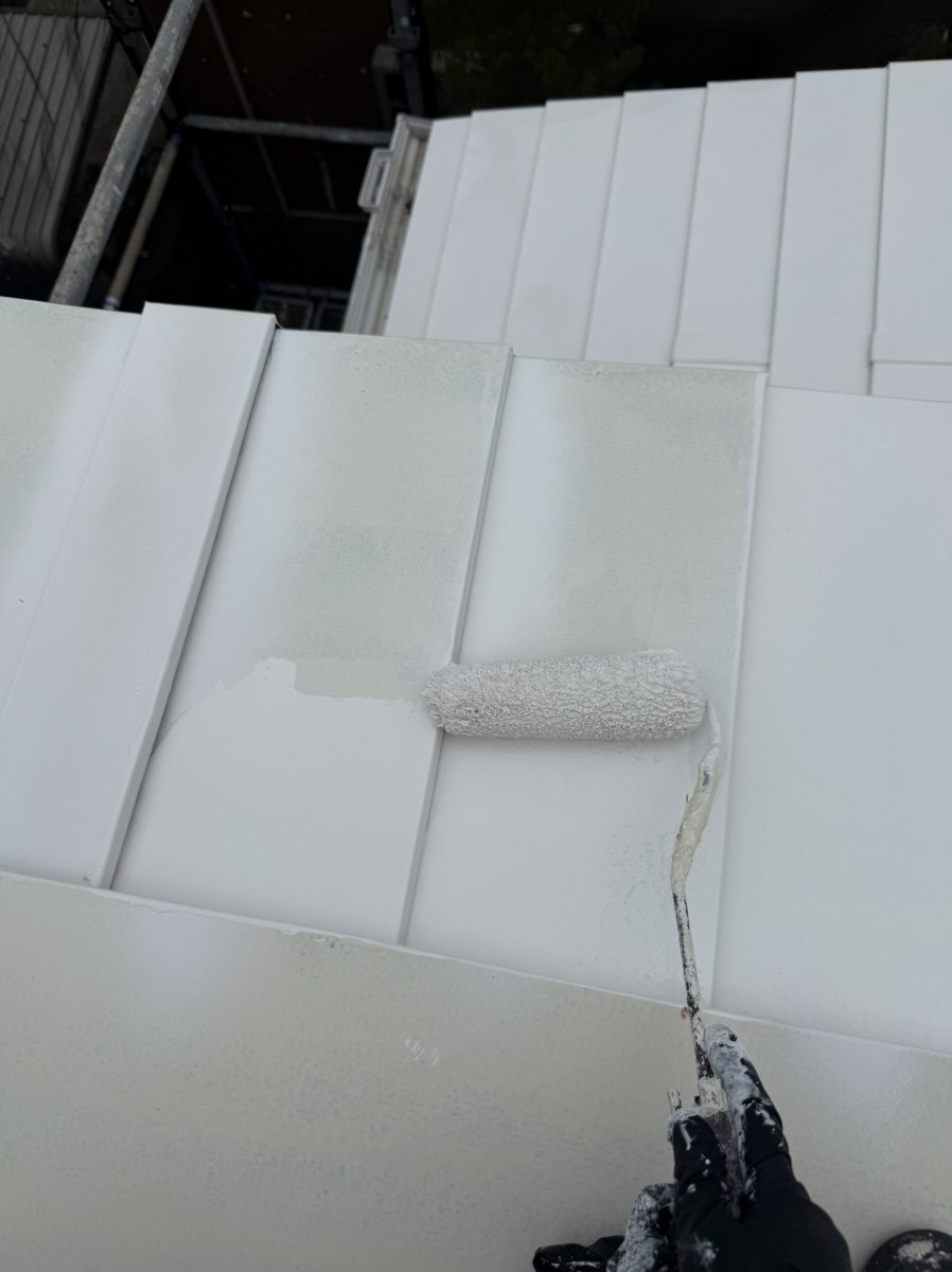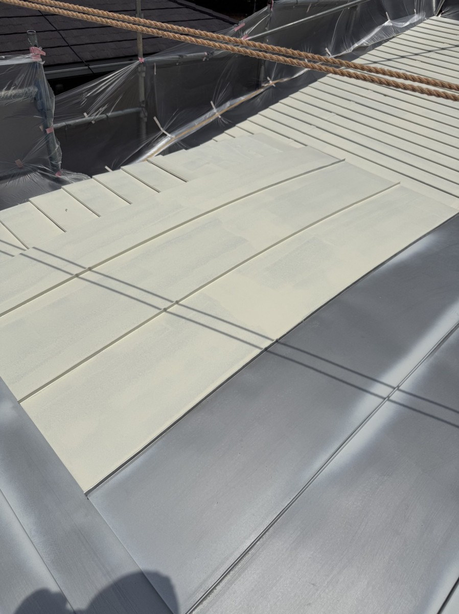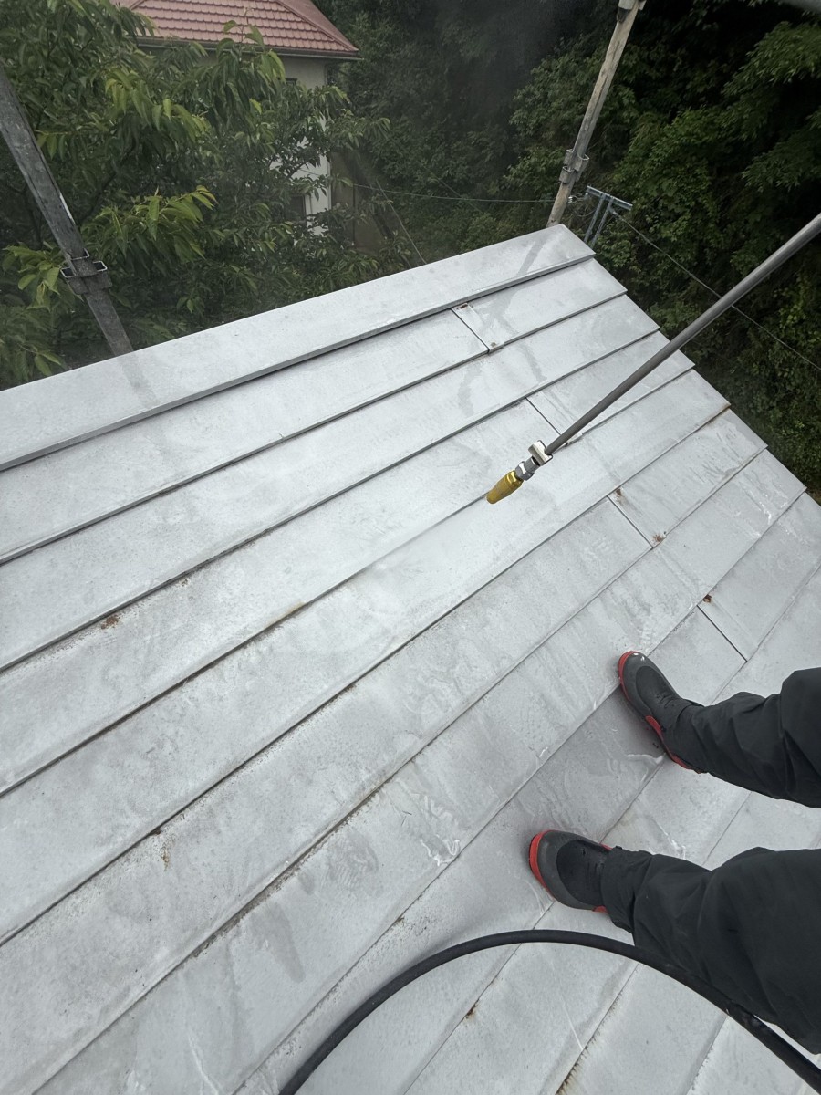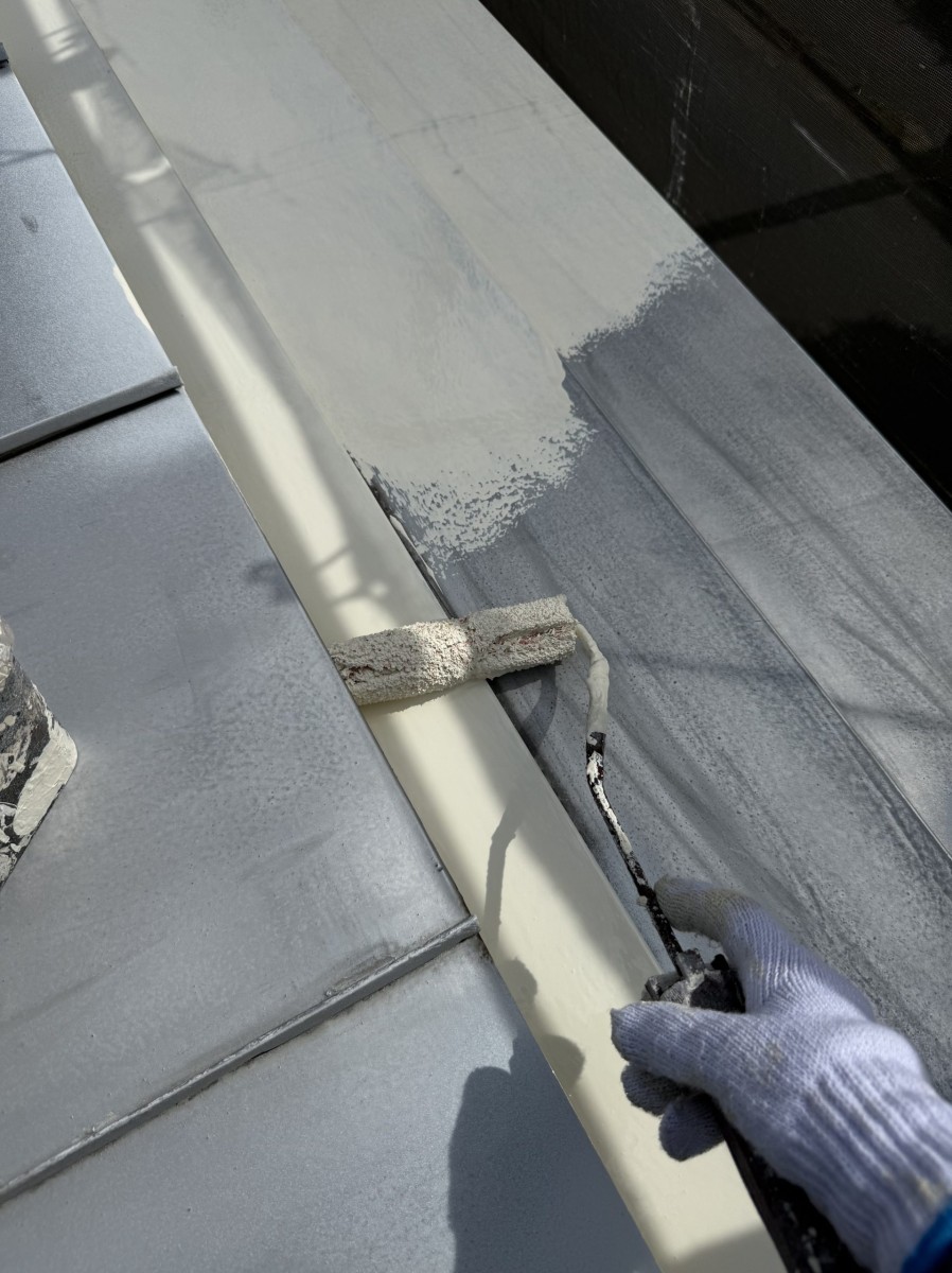 鎌倉市 屋根塗装工事 施工工程写真 2025/09/01 高圧洗浄 屋根塗装工事 【ケレン】 【錆止め】 【下塗り】使用塗料:快適サーモプライマー(水谷ペイント) 【中塗り】快適サーモF(水谷ペイント) 【上塗り】快適サーモF(水谷ペイント) 施工後
