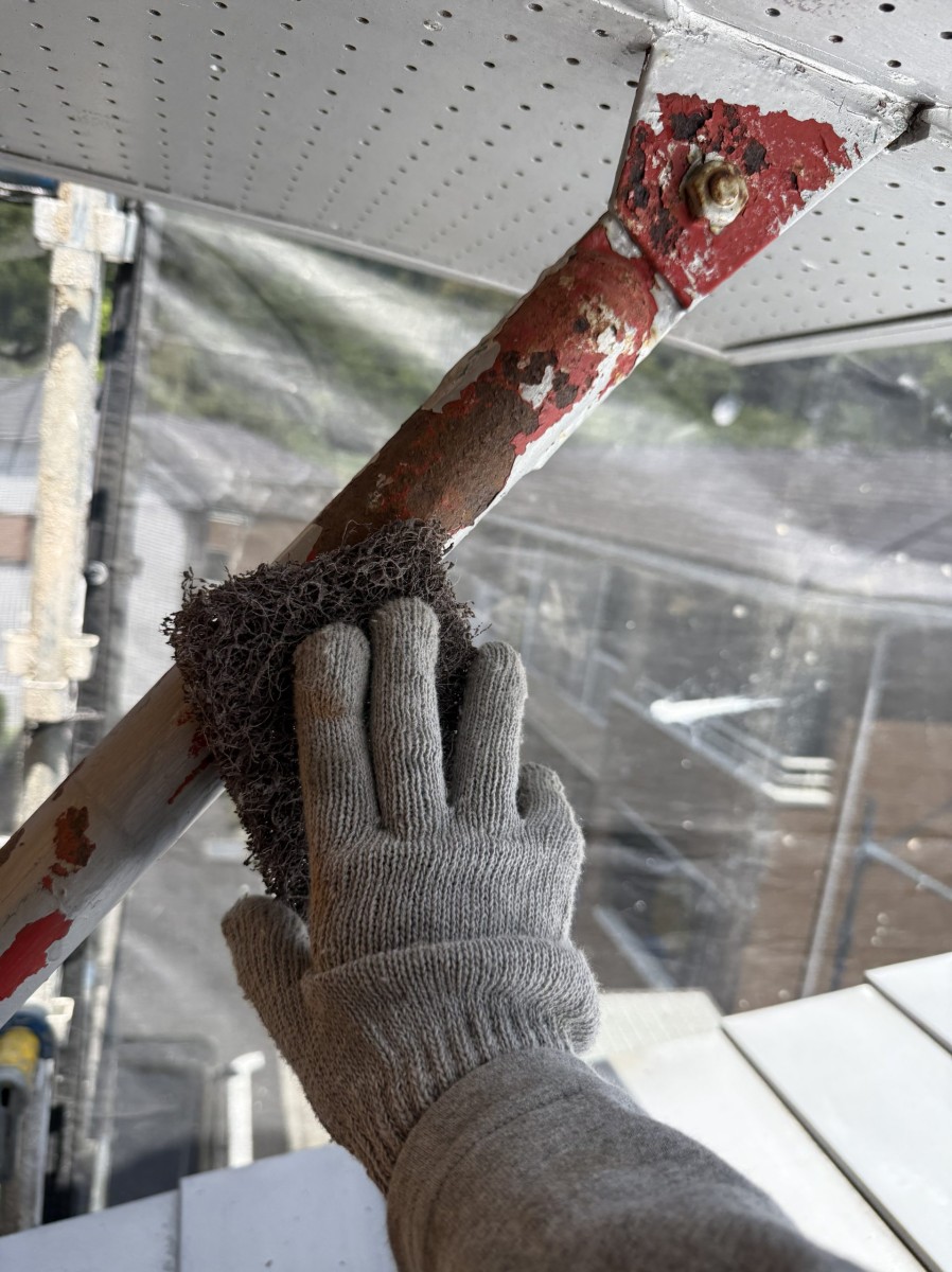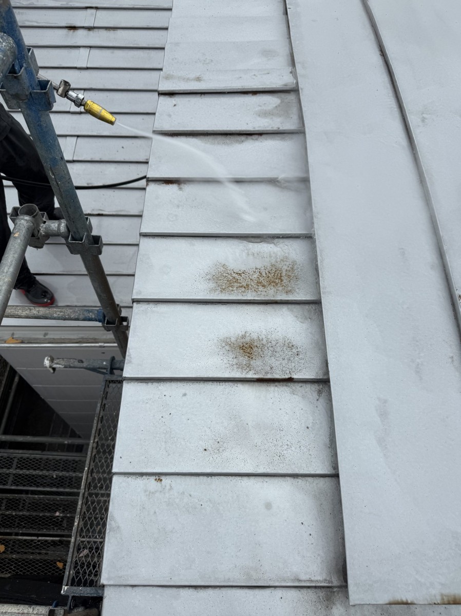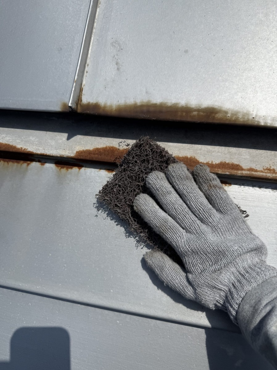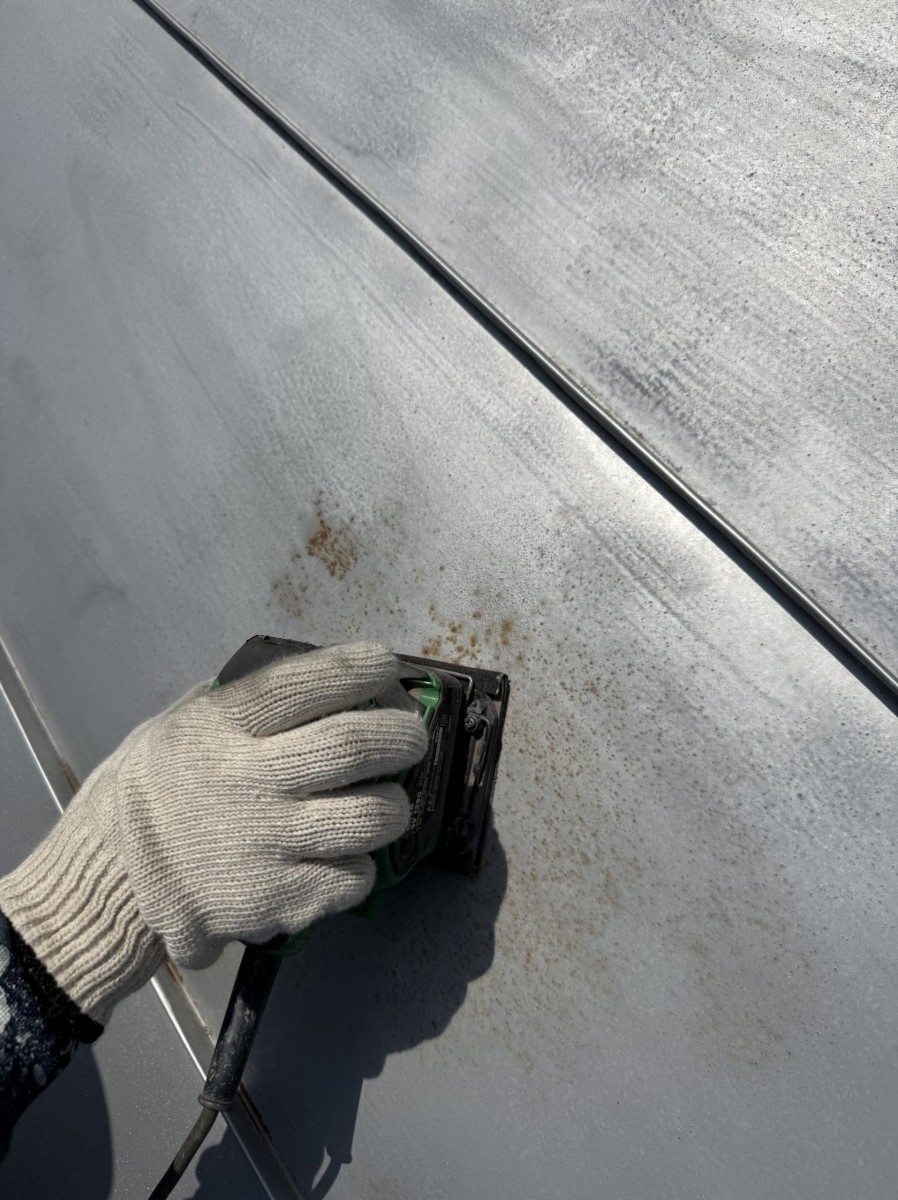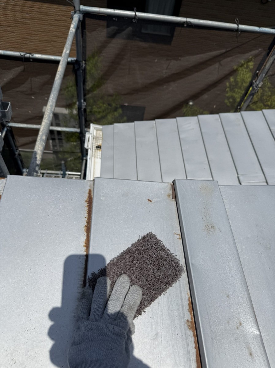 鎌倉市 屋根塗装工事 施工工程写真 2025/09/01 高圧洗浄 屋根塗装工事 【ケレン】 【錆止め】 【下塗り】使用塗料:快適サーモプライマー(水谷ペイント) 【中塗り】快適サーモF(水谷ペイント) 【上塗り】快適サーモF(水谷ペイント) 施工後